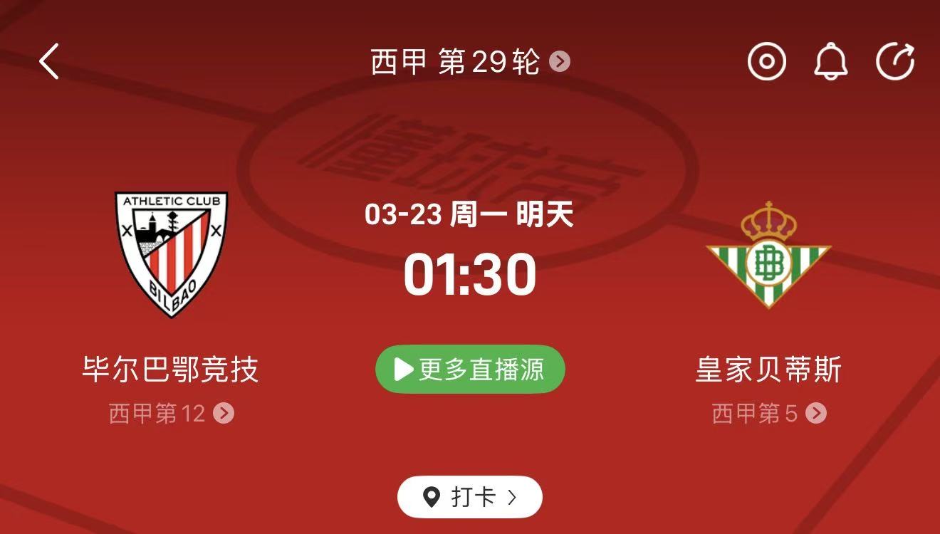 🔹 周日024 西甲:毕尔巴鄂竞技 vs 皇家贝蒂斯(01:30)