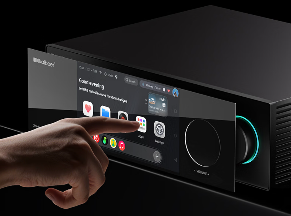 以上三款机型,均支持HDMI视频输出,用户还可单独接驳大屏电视操控,歌词滚动、音源切换都更加一览无余!此外,PURE OS配套的移动端APP——全新打造的KAIBOER HOME,亦能为用户带来充实且美妙的居家遥控HIFI体验!