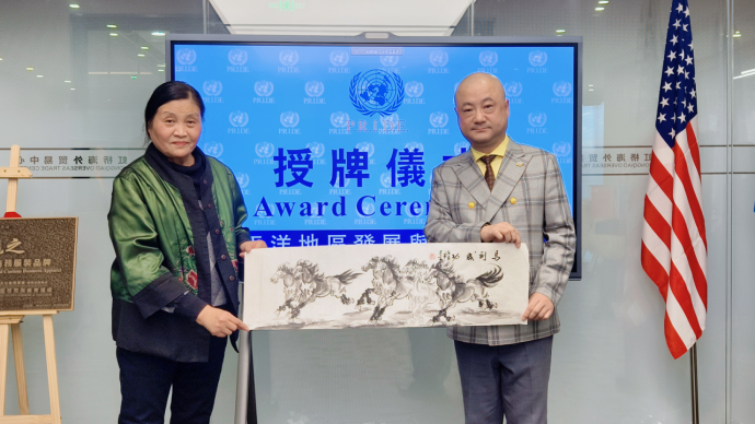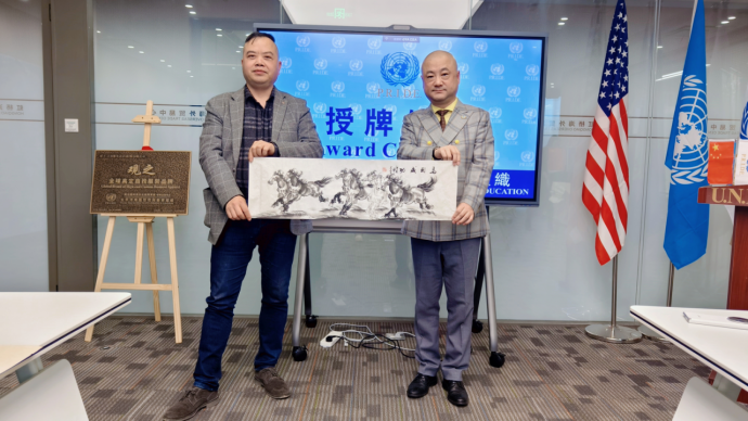 紧随其后展出的,是联合国爱心大使、著名山水花鸟画家席蓉蓉女士的精品画作。席蓉蓉女士的作品意境清雅、笔墨灵动,山水花鸟皆具神韵,兼具艺术美感与人文温度,此次画作在联合国权威平台正式展出,不仅是对其艺术造诣的高度认可,更以丹青妙笔向世界展现了中国当代女画家的艺术风采,成为国际文化交流中一抹温润动人的亮色。