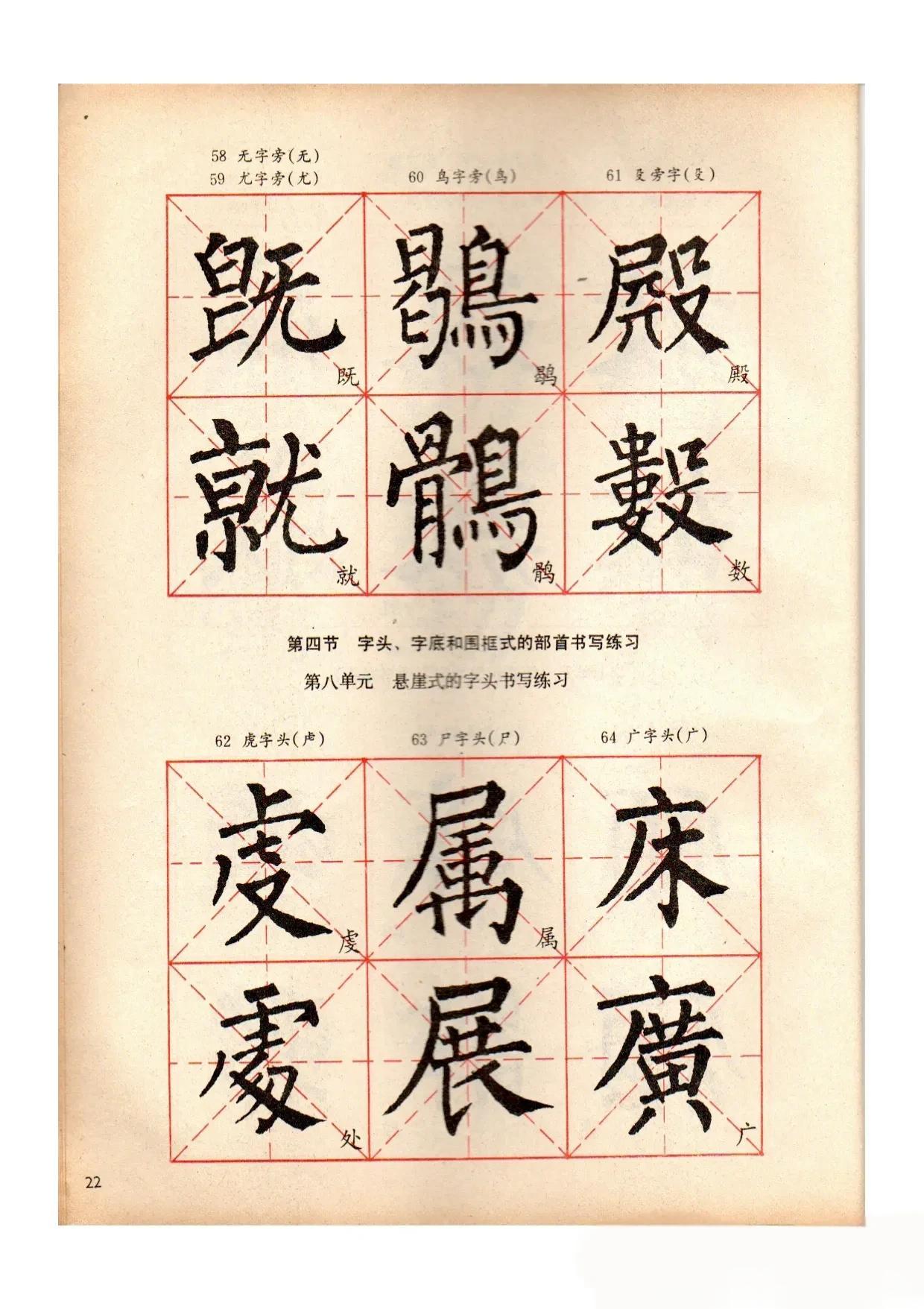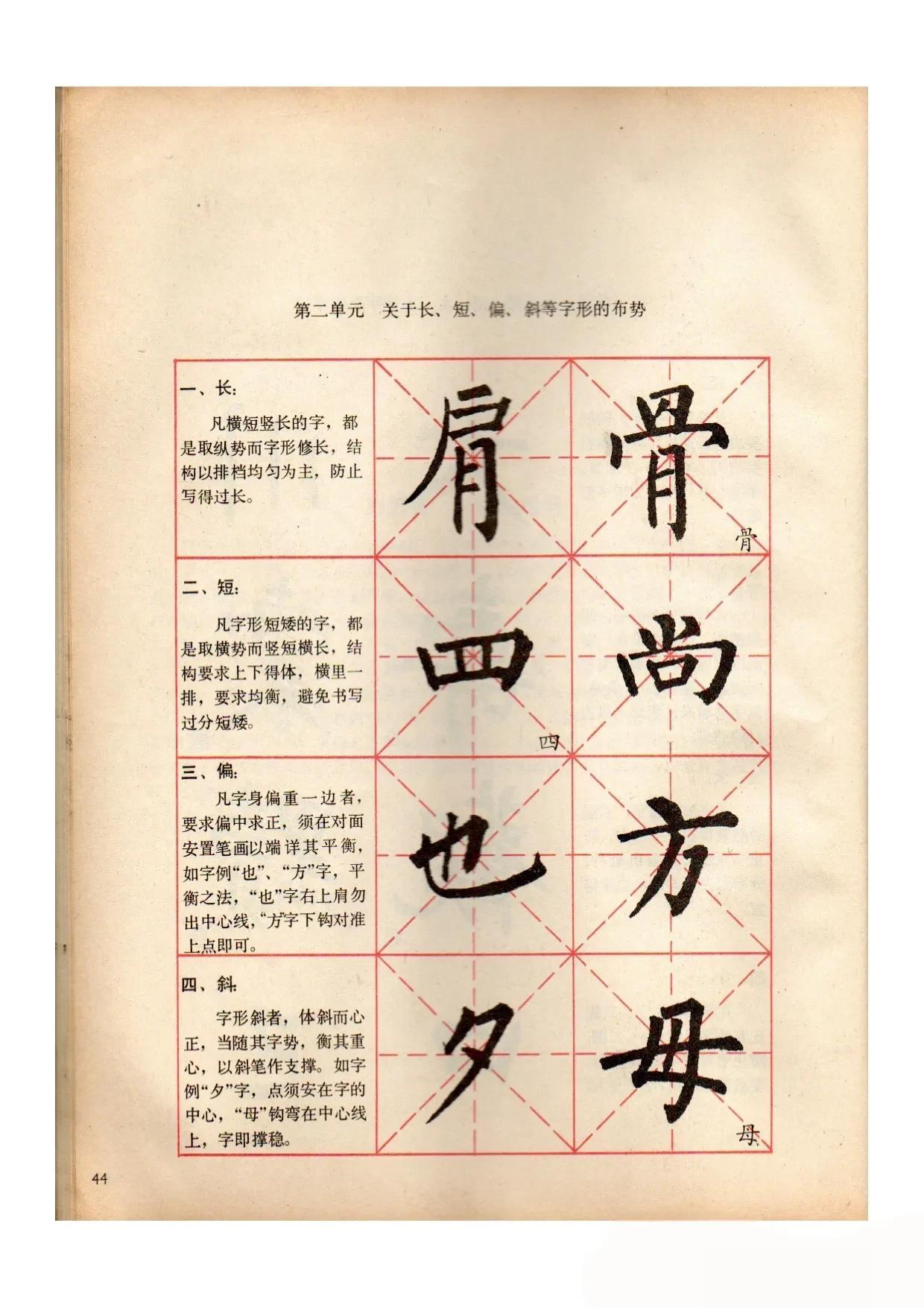 字帖的编排堪称教科书级:从八种基本笔画的运笔拆解,到独体字、合体字的结构形式分析,再到结构搭配比例、字形布势的深层技巧,层层递进、讲解详实。每个字都落在米字格中,搭配“横平竖直”“突出主笔”等直白口诀,哪怕是零基础的爱好者,也能看懂、练会。