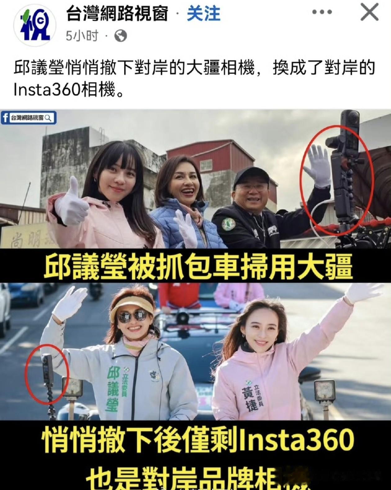 为了记录这个过程,邱议莹专门在车上安装了摄影仪器来拍摄,不料一开始用的是大疆产品,在被戳破之后,邱议莹还没有停止扫街行程,而是把大疆产品换下,把Insta360相机换上去,但是可笑的是她不知道连Insta360相机仪器也是大陆的产品,搞笑的是又被岛内民众拆穿,并且曝光出来嘲讽邱议莹。