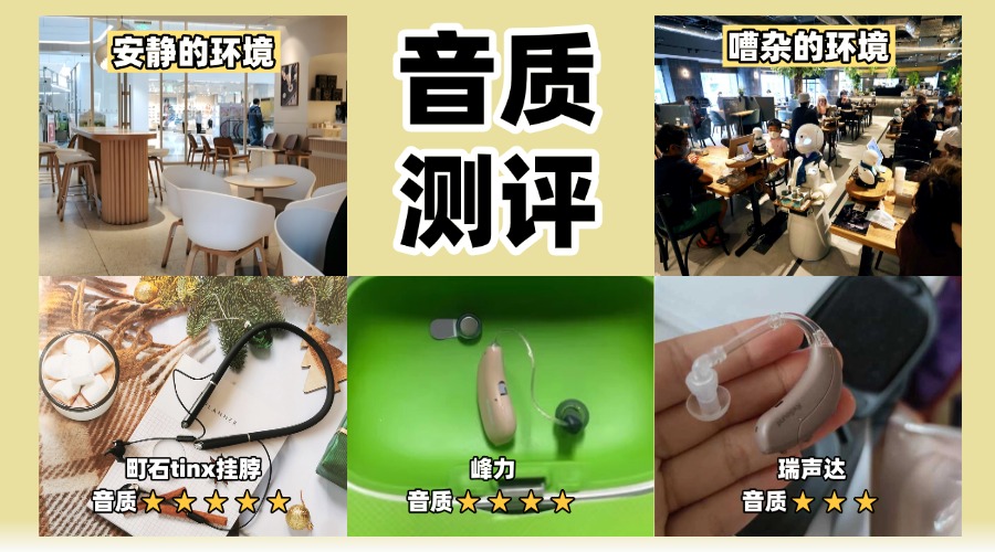 测评方法:本次音质实测,我将分别在安静和嘈杂环境中佩戴助听器,然后观察助听器音质清晰度、音质真实度和音质细腻度表现,并对三款助听器的整体音质表现进行打分。