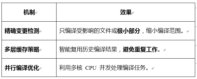 3. 增量编译:智能提高开发效率增量编译通过以下三重机制确保编译高效性,特别有利于大型项目和高频的代码修改: