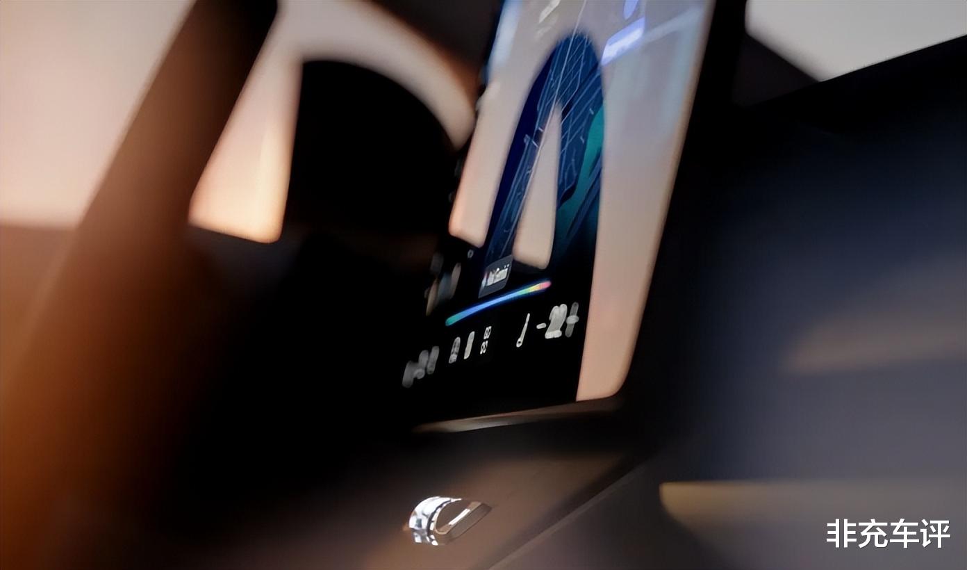 内饰这块有点意思。悬浮大屏横着放,下面居然保留了个旋钮按键!这得给个好评。