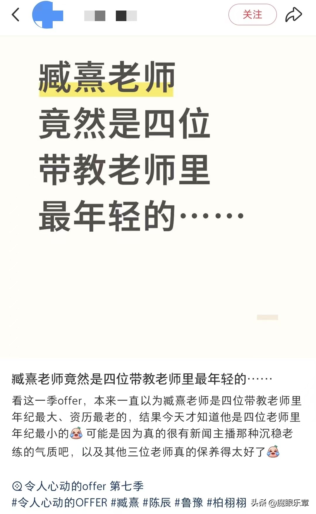 在热播真人秀节目《令人心动的OFFER》里,臧熹、陈辰和柏栩栩成为带教人,首次同框合作为主持届新人点亮职场明灯。为了拍摄录制这档综艺节目,臧熹曾在个人社交平台停更并消失近2个月。在节目中,他被大家称为“爹味”十足的导师。原来在新闻主播台前播了20多年的新闻人,涉猎综艺节目也带着浓厚的“正派感”。