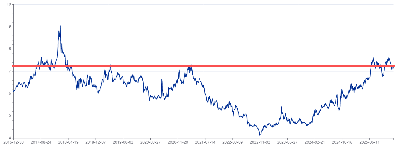 最新的PE是7.2倍。而2020~2021年最高也是7.2倍。也就是说,银行的PE现在已经回到了2020~2021年的最高水平。