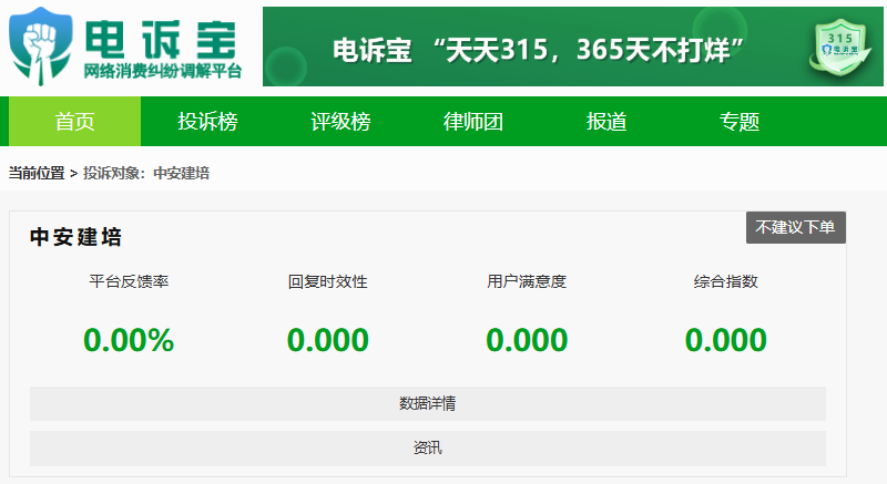 接到该用户投诉后,我们第一时间将投诉案件移交该平台相关工作人员督办妥善处理,对此,中安建培暂未作出回应。