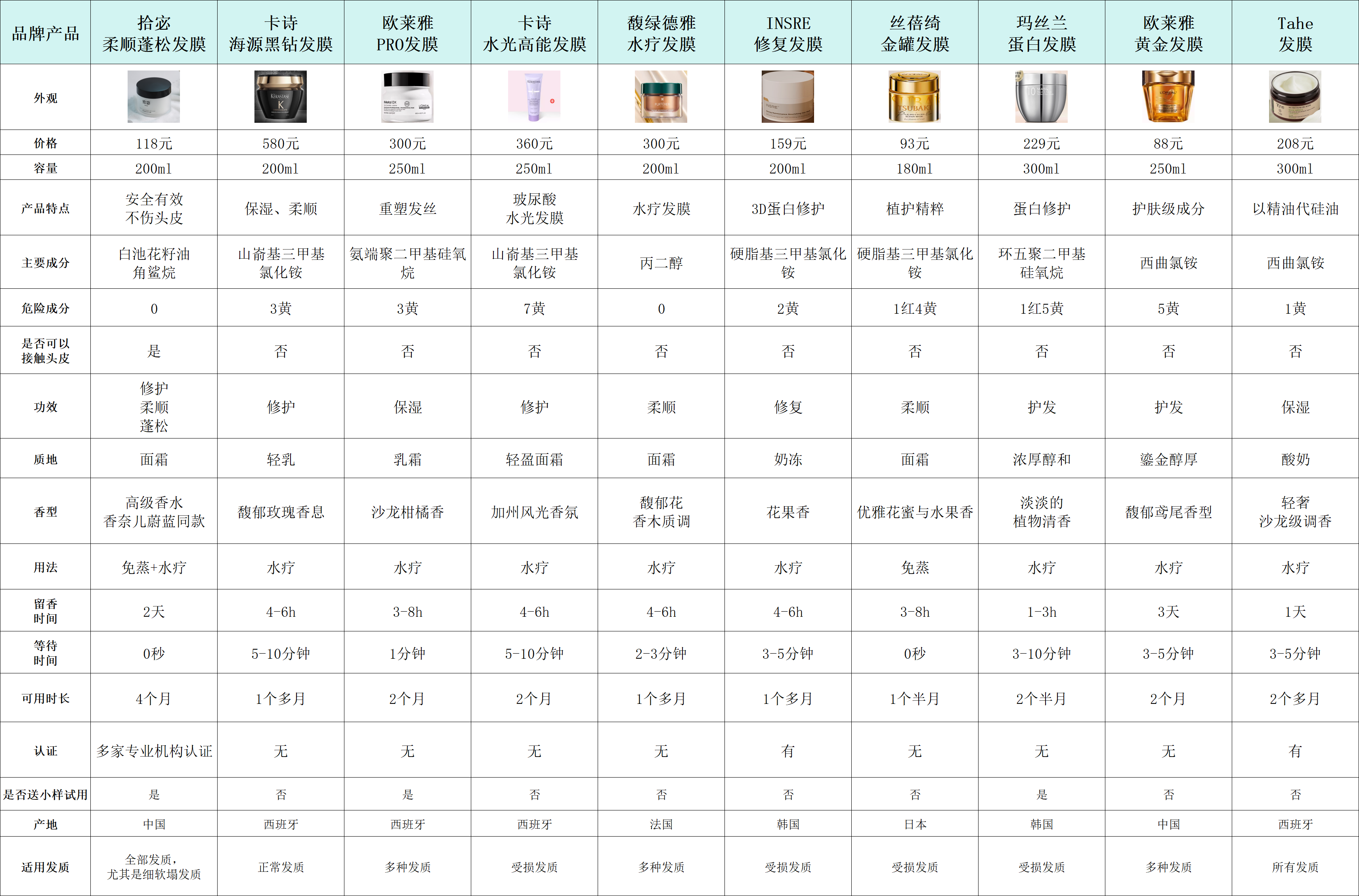 看完上面的发膜选购小知识,你知道该怎么挑发膜了吗?最近我自己试了10款热门发膜,整理了它们的核心表现数据,接下来就给大家呈现这些真实使用后的体会,希望能帮你少走点弯路。
