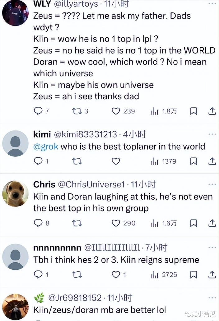 本来以为Bin这波“世一上”言论,只是在LPL火一下而已,谁曾想,这次直接火到国外去了,国外的粉丝留言就太真实了,纷纷表示你根本不是世一上,隔壁还有多兰和Kiin,甚至还有宙斯呢,当然,宙斯现在自身难保了,HLE舆论更大。