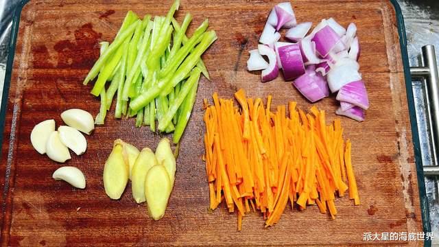 红烧武昌鱼1、准备适量青椒,胡萝卜切丝,洋葱切小块,蒜瓣去皮,姜切片
