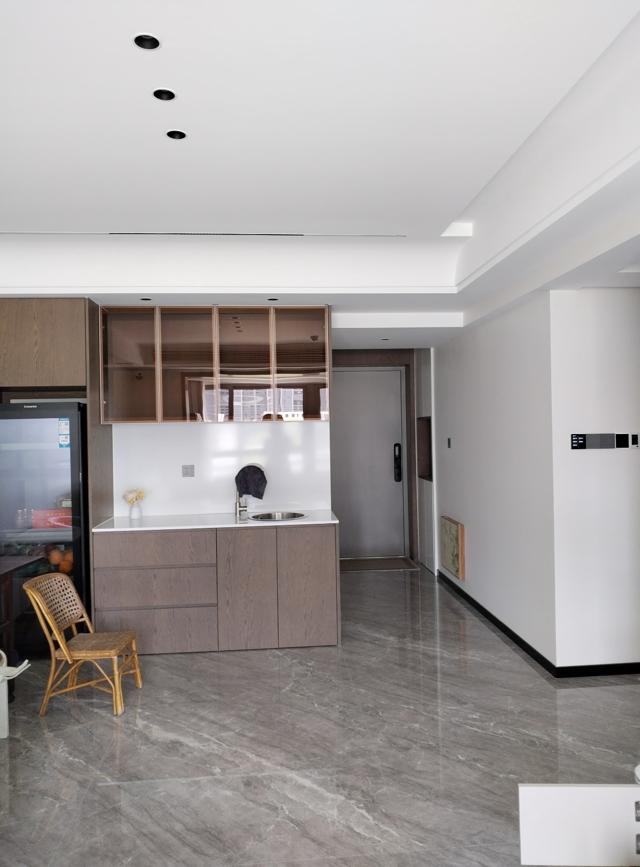 墙面溅上油污后,用湿抹布蘸取少量洗洁精就能擦干净,不会留下痕迹;地面洒上酱油、醋,也不用担心渗透,清洁起来非常方便。而且它的表面硬度高,厨房的锅碗瓢盆不小心掉在地上,也不会对地面造成损伤。