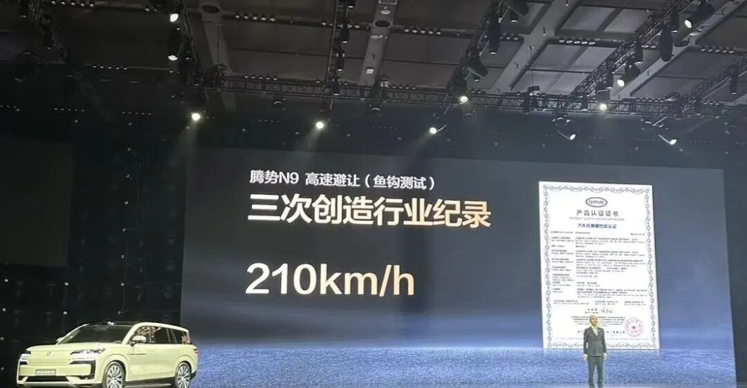 科技安全方面腾势N9全系标配易三方平台。在极度危险的高速避让场景中,三破高速避让世界纪录,再次把鱼钩测试驶入速度提升至210km/h,带来高速避让不侧翻极致安全守护。