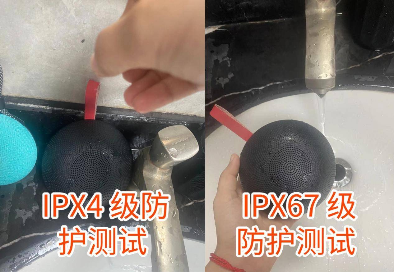 1. IPX4 级防护测试:对着音箱的正面、侧面、接口处泼水 30 秒,总水量约 500ml;之后模拟运动出汗,将模拟汗水的淡盐水泼在音箱表面,静置 10 分钟后,测试设备是否能正常工作