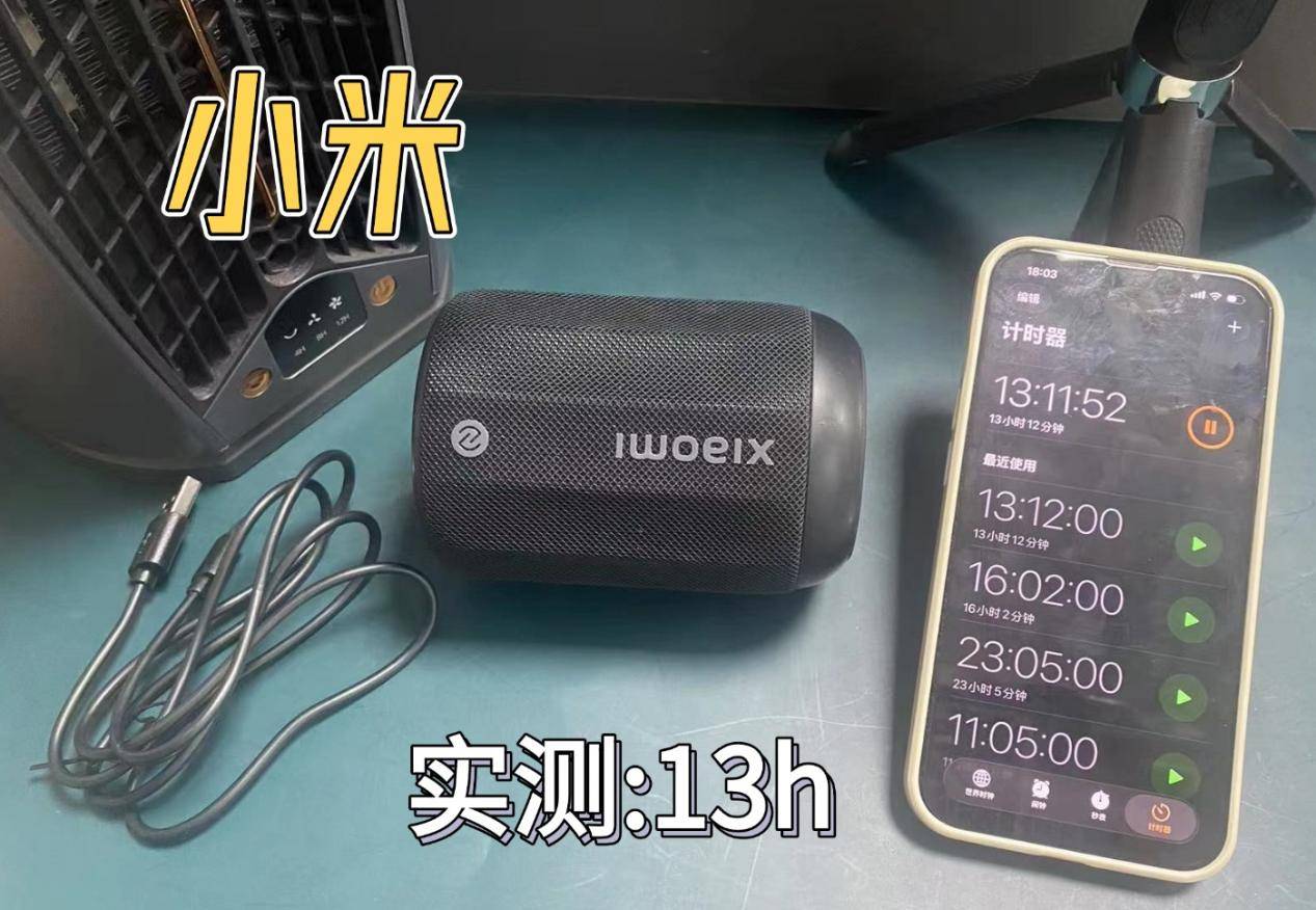 - 小米随身音箱:总播放时长为 13 小时 ,日常每天播放 2 小时可支撑 56天,满足日常通勤、短途户外的需求,不过相比另外两款,续航表现稍弱。