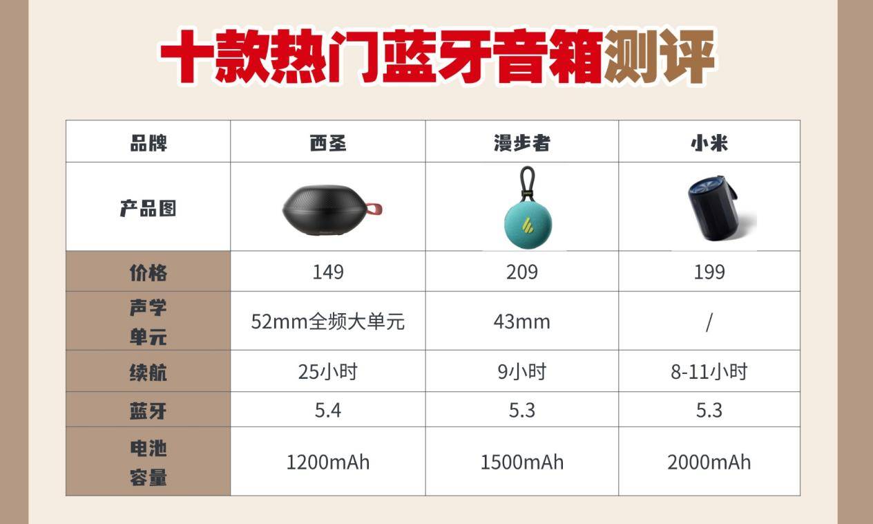 300 元预算内的便携蓝牙音箱,是学生党通勤、上班族桌面、户外露营等多场景的首选区间。面对漫步者、西圣、小米这三大热门品牌,同价位不同定位的机型该怎么选?是追求极致性价比,还是偏爱品牌质感,亦或看重实用便捷?