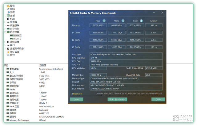 ▼ 锐龙 AI 7 350 支持 DDR5 - 5600MHz 内存,最大可做到 64G,这里单独给他配上了 一 对金百达的条子。话说这段时间内存价格简直离谱,想当初我入手才 300多,现在单条都 600 起步了。