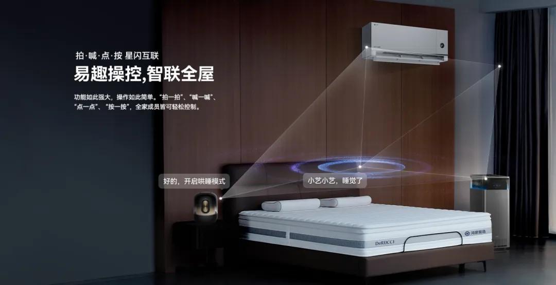 一方面,各展所长,将碎片化的技术点、产品组合起来,构建起完整的“睡眠生态”,实现从单一设备到全场景智能的跨越。比如慕思与鸿蒙智选合作打造“智慧卧室”:通过小艺智能助手进行语音调控、切换不同睡眠模式;打通鸿蒙生态,实现床、台灯、空调、窗帘等设备的智能联动。