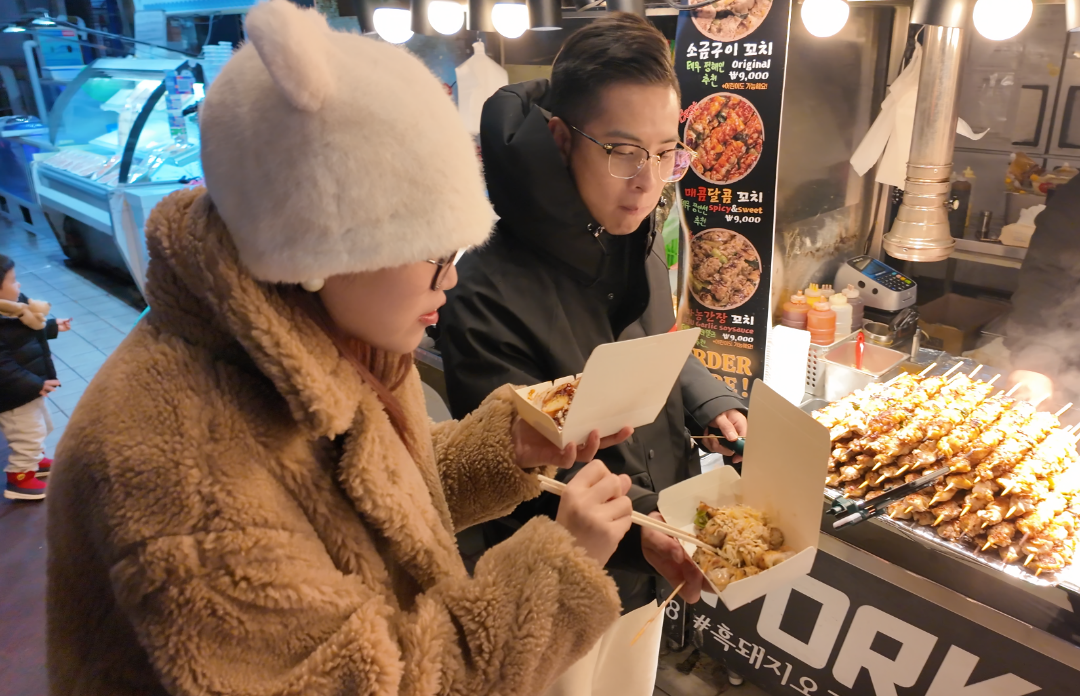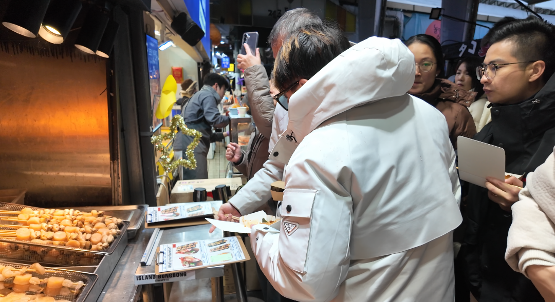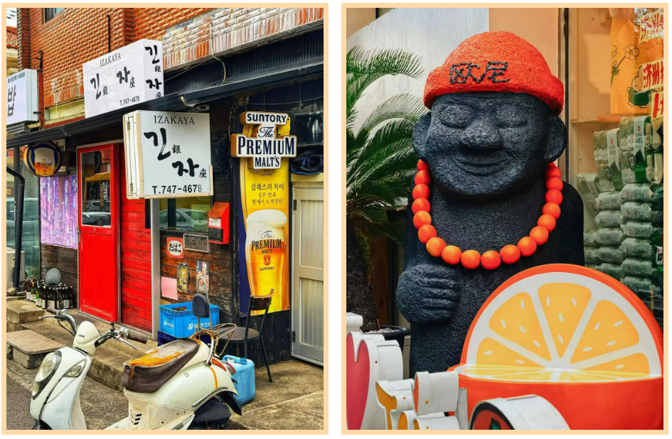 这里不是景点,而是本地生活的缩影。焦香四溢的黑猪肉串、酸甜清新的济州橘子汁、软糯弹牙的炒年糕……每一口都是地道的济州风味。