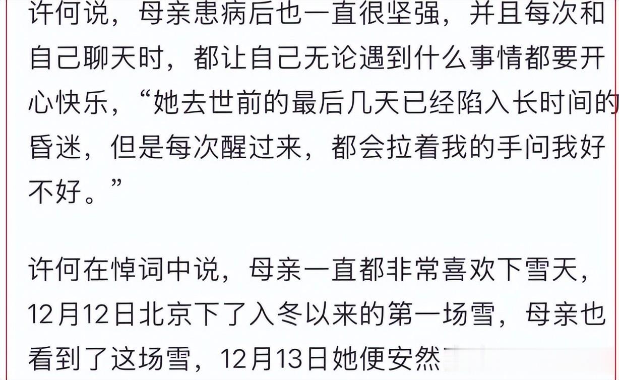 许何曝光的母亲临终场景,像一束温柔的光,照进了这个喧嚣的世界。