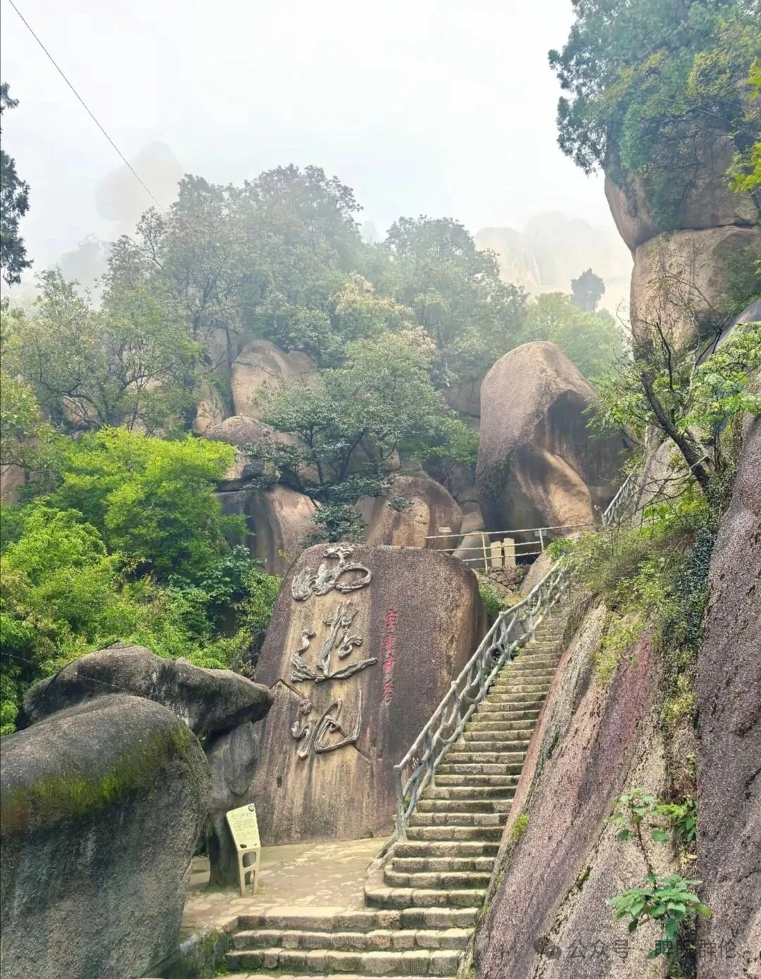 除了角色,故事里的“法宝”也散落山中。巍然耸立的“定海神针”,犹如孙悟空手中的金箍棒,直插云霄,气势非凡。而被称为“飞来石”的巨石,则不知何时从天而降,稳稳立于峰顶,为这片奇石王国增添了一份神秘。