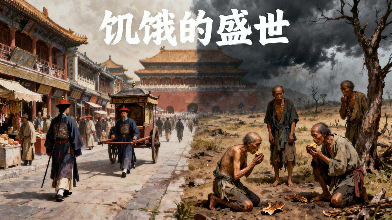 首先是 “饥饿的盛世” 这个残酷的现实。虽然耕地和人口都在增长,但人均粮食产量却在下降:康熙初期人均粮食 1183 斤,到乾隆末期就跌到了 867 斤,甚至低于秦汉时期的 985 斤。这是因为耕地的增长速度远远赶不上人口膨胀的速度,而当时没有化肥、农药,耕地单产很难大幅提升。《檐曝杂记》里记载,乾隆中期,江南地区的佃农辛苦耕种一年,除去交租和口粮,几乎没有结余,一旦遇到灾年,就得靠挖观音土、吃树皮度日。乾隆五十一年,山东、河南爆发饥荒,灾民流离失所,甚至出现 “人相食” 的惨状,这哪里是盛世该有的景象?