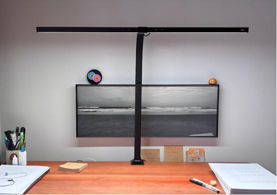 A9走的是典型的大品牌稳妥路线。55cm灯头配合多段可调节灯臂,覆盖1.2米桌面没有问题,适合桌面空间充裕或多人共用的场景。光源为全光谱灯珠,显色指数约Ra97,色彩自然,不易偏色。