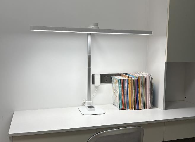 但从光学结构看,它采用的是直发光设计。实测中蓝光峰值达到1.0,虽在安全范围内,但在近距离、高亮度使用时,光线集中度较高,部分对光线敏感的人群容易感到刺激。此外,防眩光主要依赖定向投射,边缘光场的均匀性需要频繁调整灯臂来补偿。整体来看,更适合桌面空间有限、且有上网课需求的家庭,但并非以长期高强度护眼为核心设计。