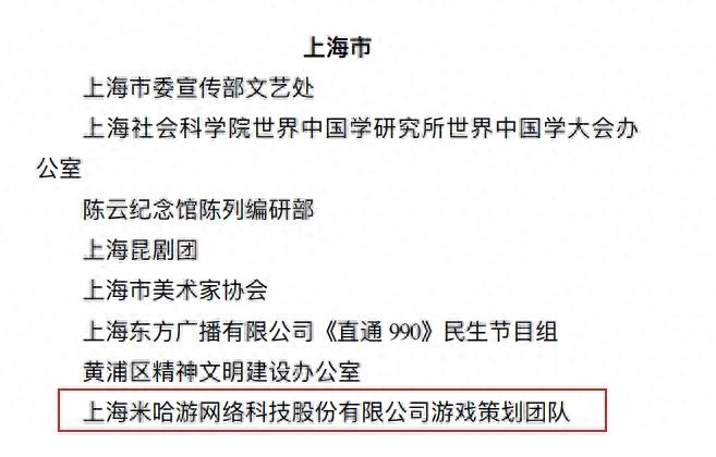 用户发现,上海市公示名单中出现了米哈游网络科技股份有限公司游戏策划团队的名字,另外还出现了湖南快乐阳光互动娱乐传媒有限公司(芒果 TV)、奥⻜娱乐股份有限公司、成都可可⾖动画影视有限公司等商业公司。