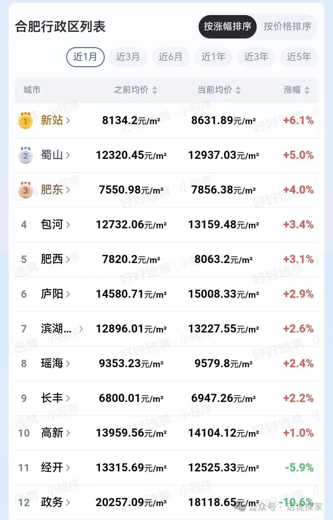 根据好好选房数据显示,合肥九区三县近1月涨跌榜单来看,近一个月以来的二手房市场终于呈现上涨的局面,可以看到的是目前合肥有7区三县全部上涨,房价或已开始触底回升。