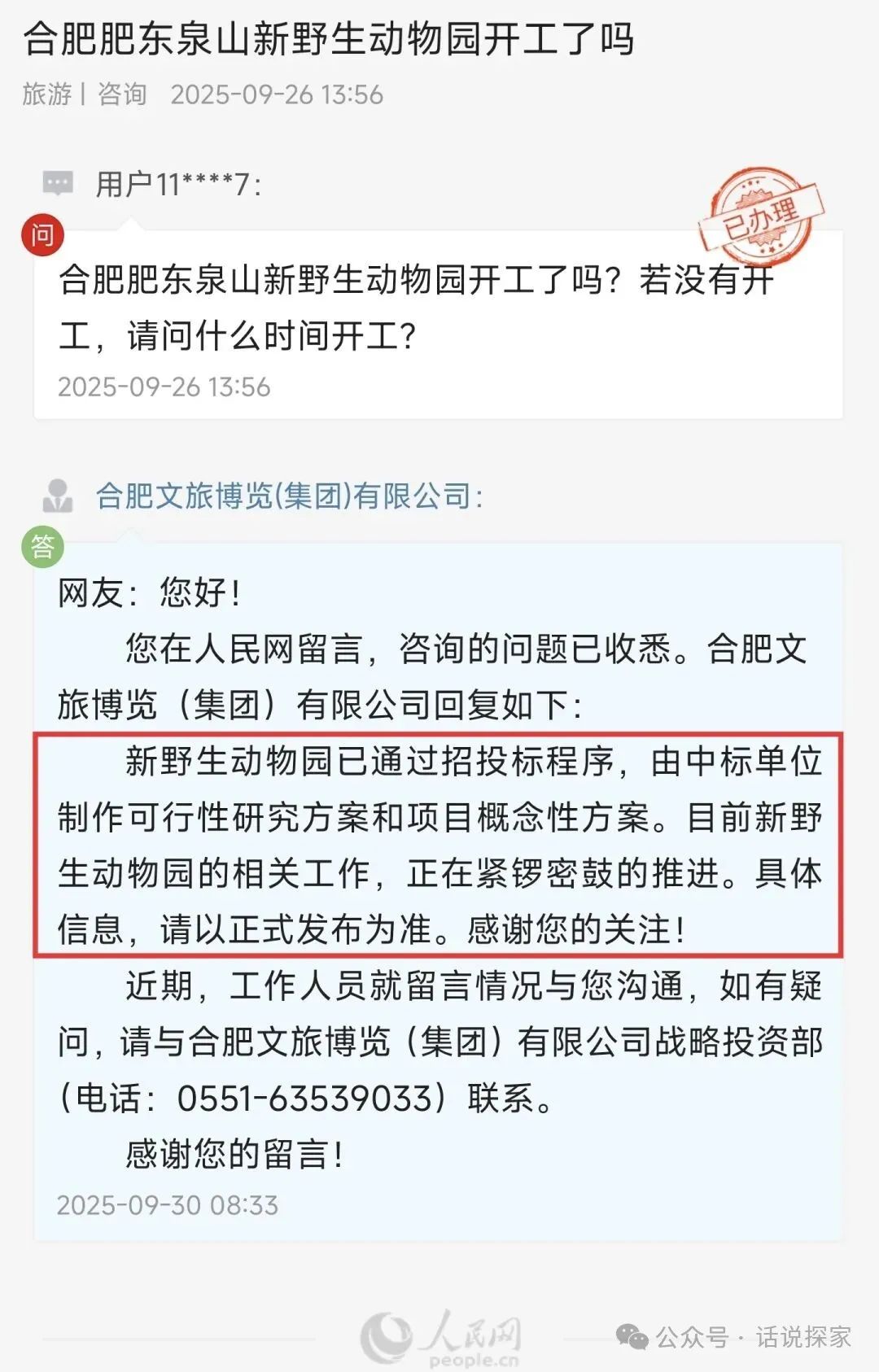 网友留言咨询合肥肥东泉山新野生动物园开工了吗?若没有开工,请问什么时间开工?