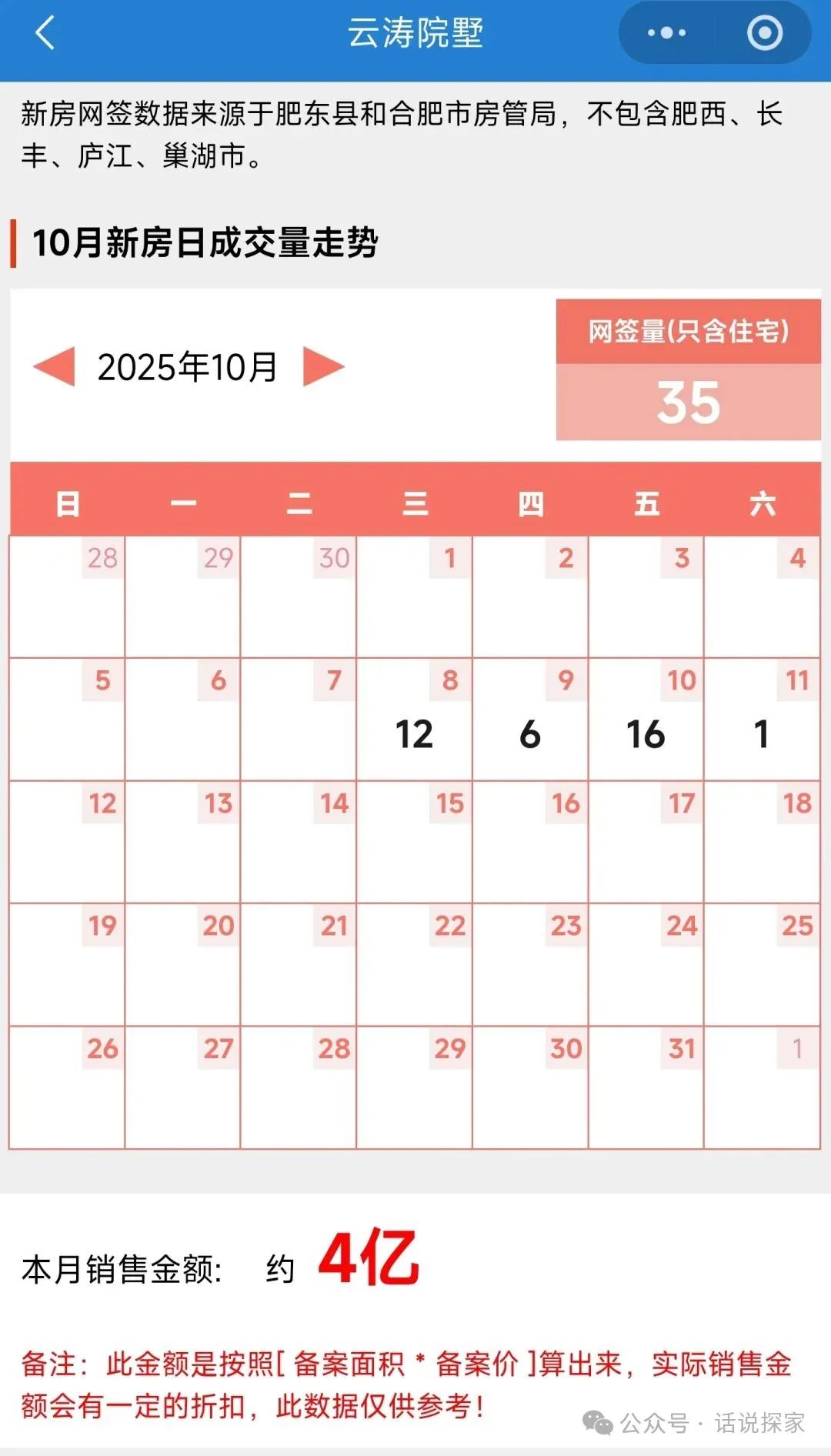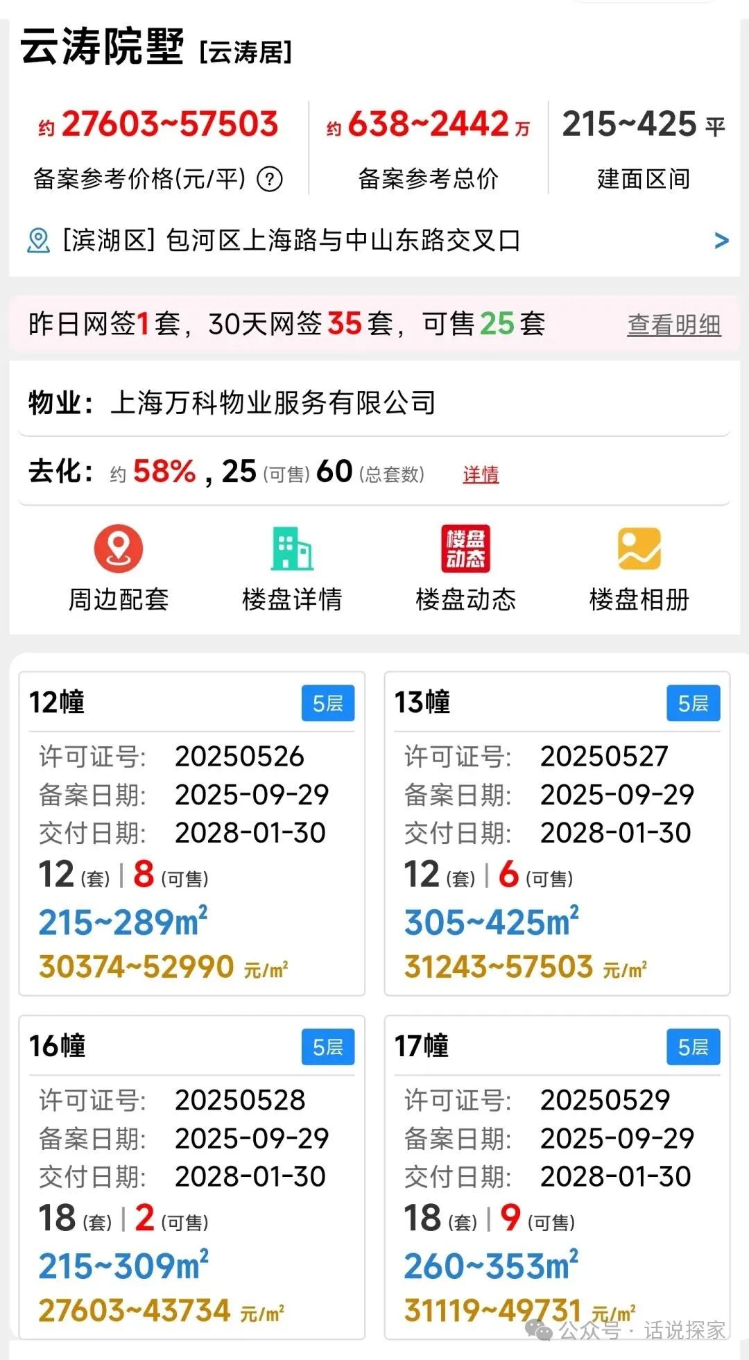 滨湖区省府东板块的叠墅产品合肥轨道雲涛,前段时间已经首开,推出4栋楼60套房源,目前网签数据显示,已签约35套,而备案0套,去化占58%,可能数据会存在一定的延迟,持续关注一下该盘的销售去化情况。