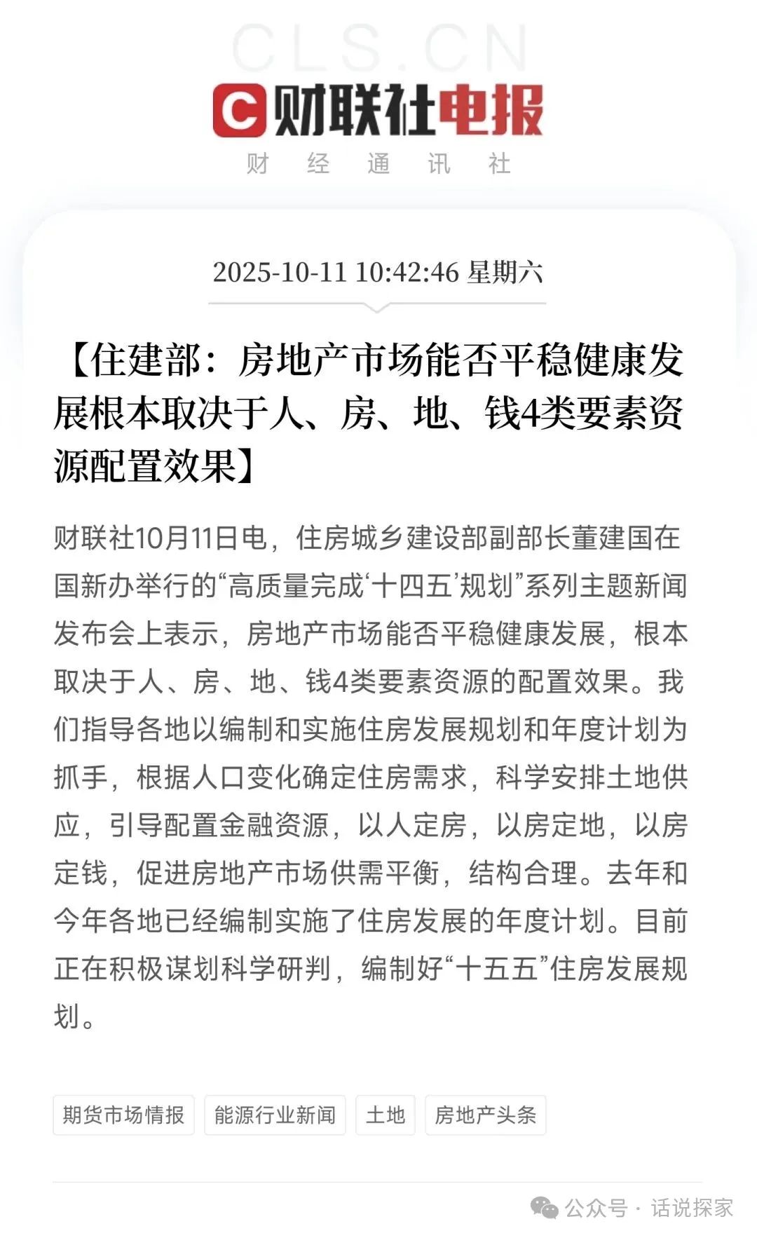 近期,住建部指出,房地产市场能否平稳健康发展,根本取决于人、房、地、钱4类要素资源配置效果。