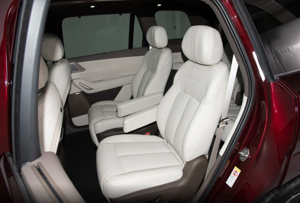 宽大座椅对人体有着出色支撑性,车内采用六座布局,第二、三排的空间表现同样不错,虽然它的车身尺寸有所缩减,但实用性没有任何影响。除了空间够用,乘坐舒适度也不差,前排座椅标配加热通风以及按摩,第二排座椅配备加热、通风、按摩以及后排小桌板,如果是高配车型还将配备副驾零重力座椅,此外第三排座椅还支持加热,基本上该有的舒适性功能都配备了。考虑到实用性,座椅周围遍布多个储物空间,很好考虑到全家人一同出行对储物空间的需求。后备箱内集成了丰富座椅调节功能,车内空间灵活多变,确实考虑到家庭用户的实质用车需求。