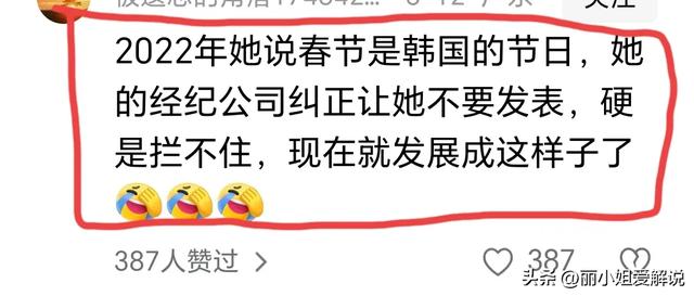 从2022年开始,李凯馨就说春节是韩国的节日,助理拦住不要发表,硬是拦不住。