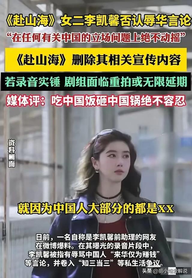 《赴山海》剧组也把李凯馨除名。眼看事件控制不住了,李凯馨公司才发文表示录音是造假,将依法维权。
