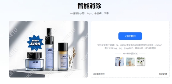 ②超强智能批量化处理。除了单个图片外,还能够实现批量处理最多100张图片的功能,而且还能根据实际需求选择是否开启“智能匹配”。如果你的水印位置不固定的话,则建议采用 “智能消除”模式,反之则可以选择手动标出后批量应用至所有图片上,从而提高工作效率。