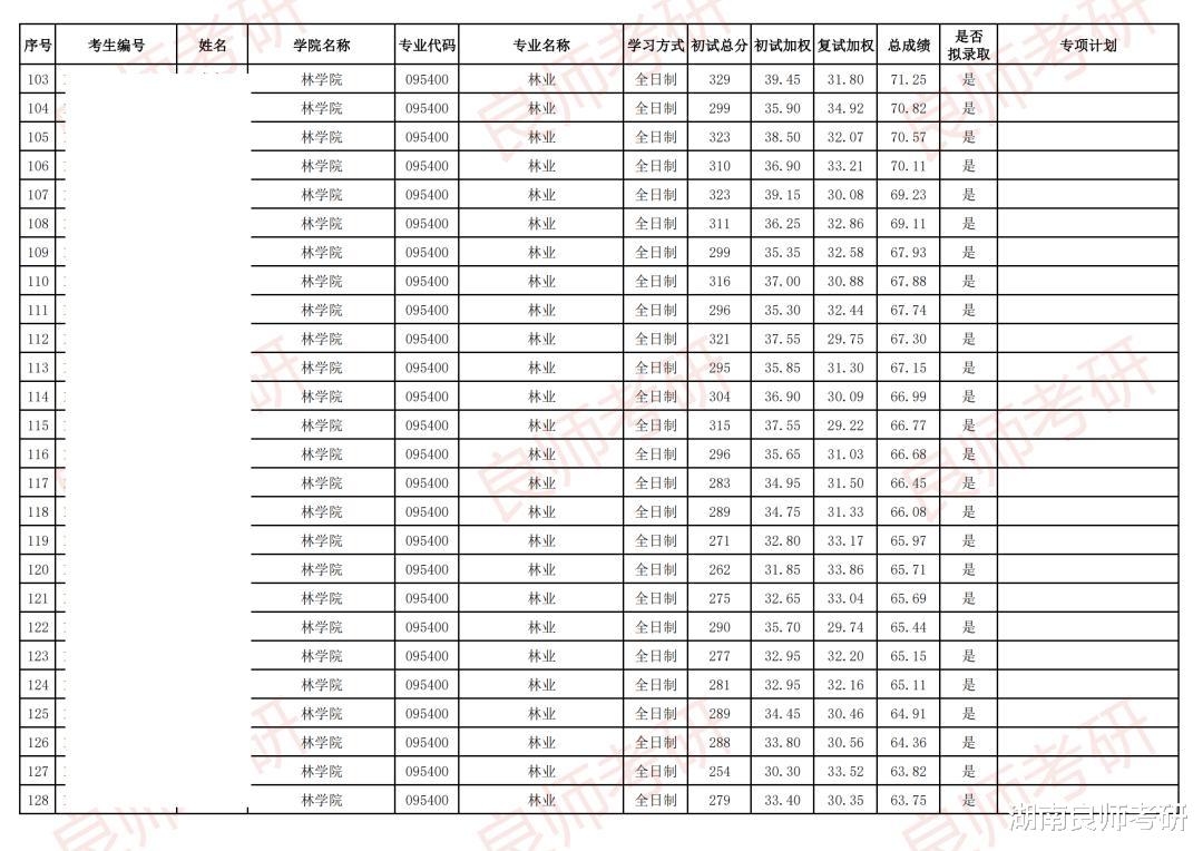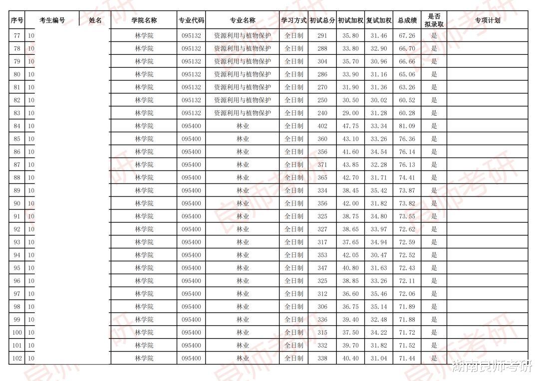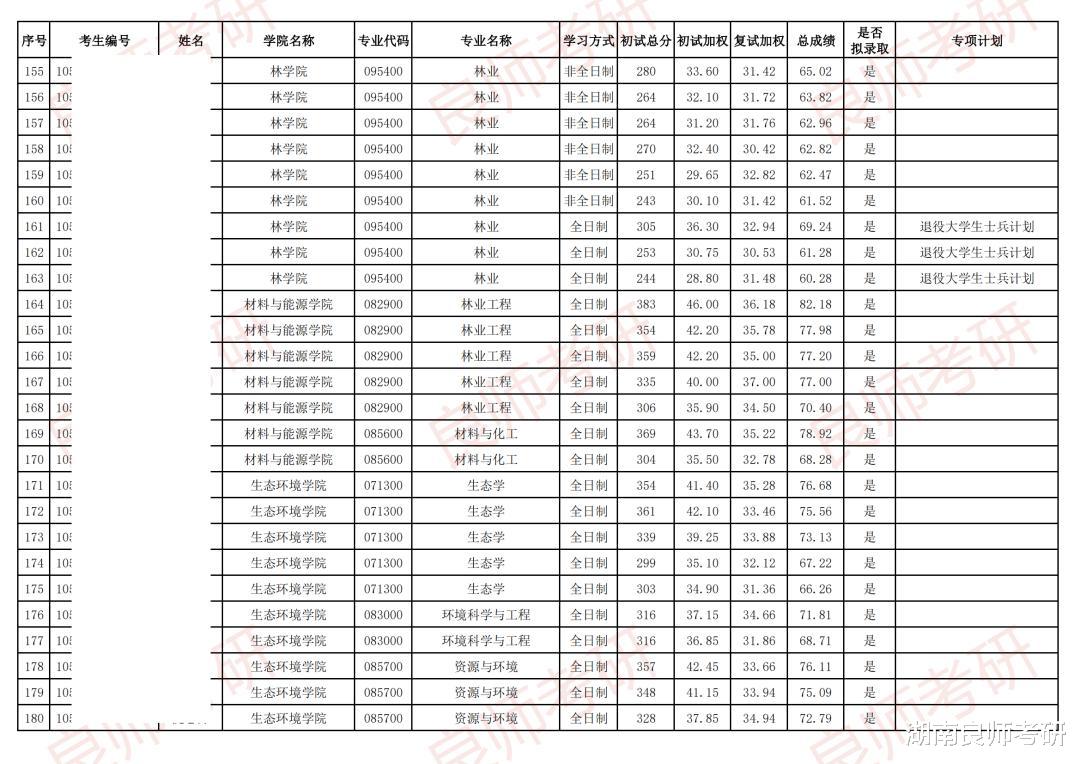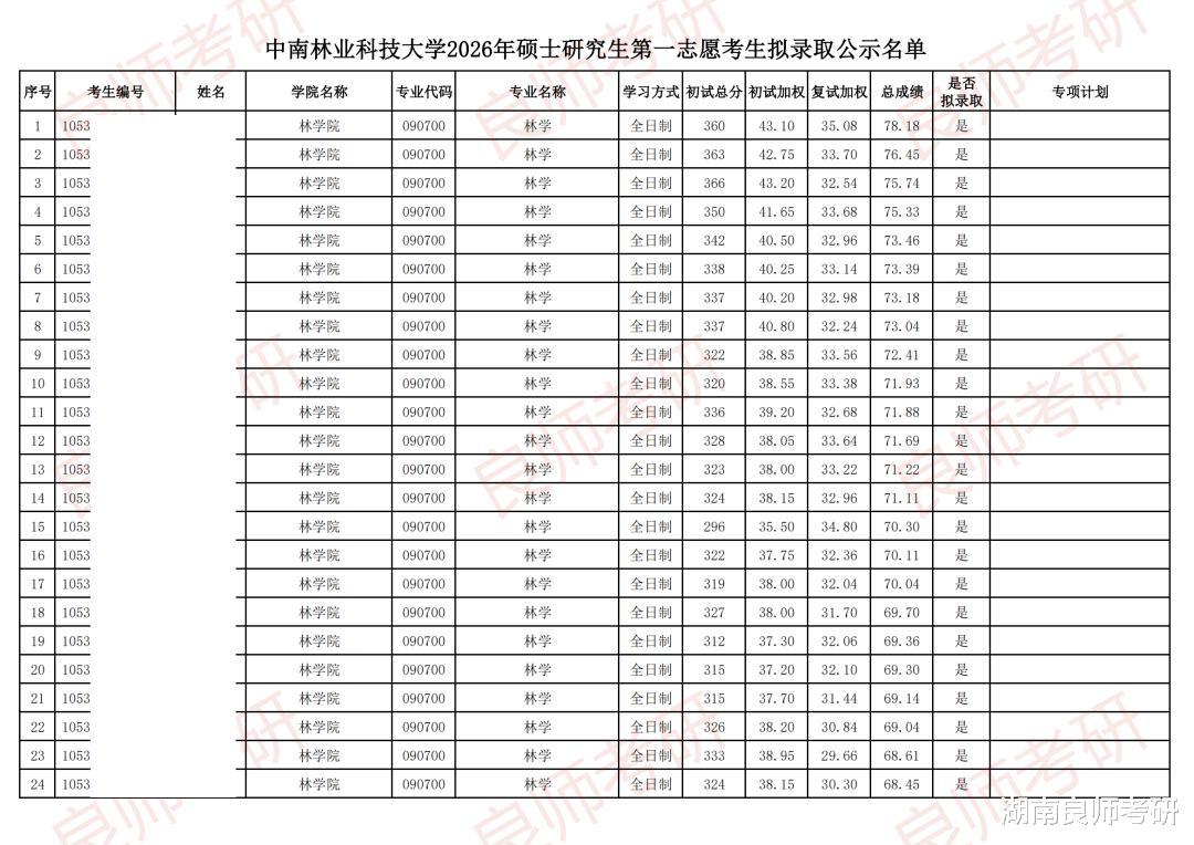 以下为中南林业科技大学26考研一志愿复试拟录取名单(部分)