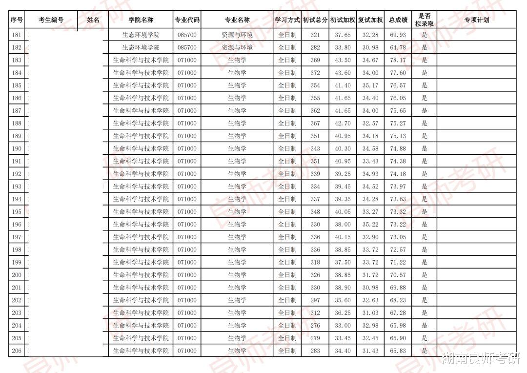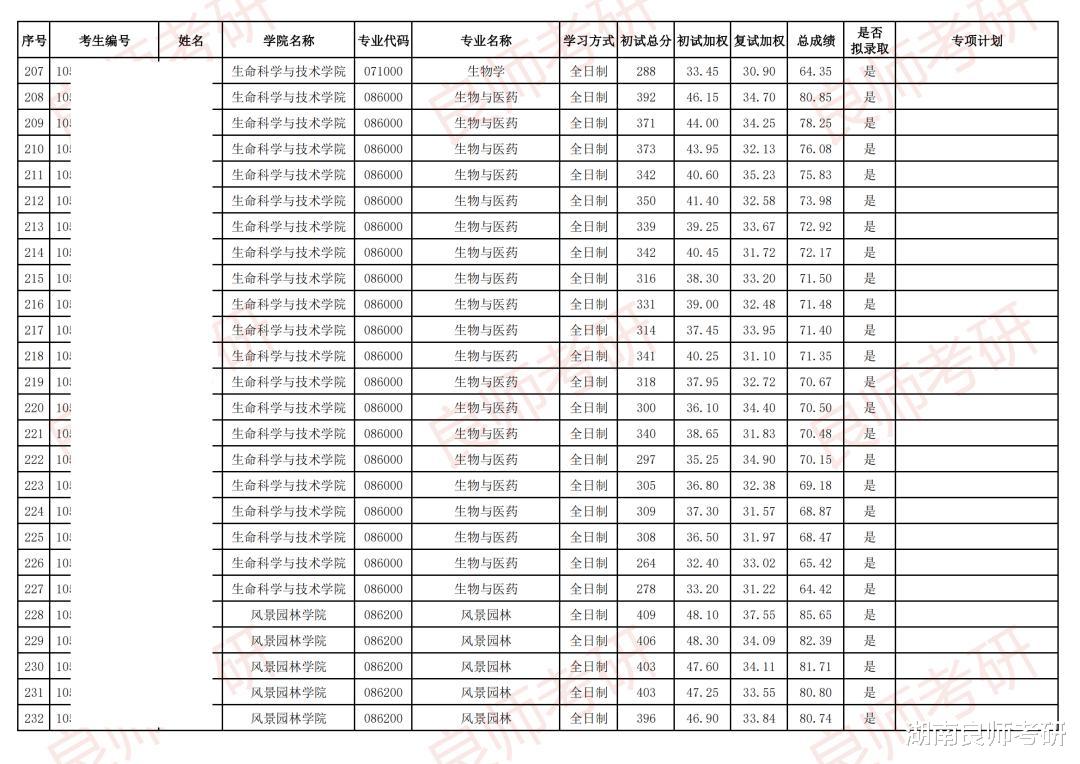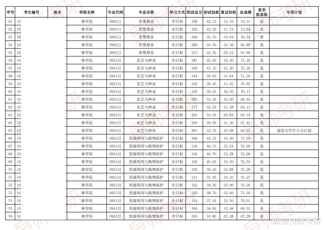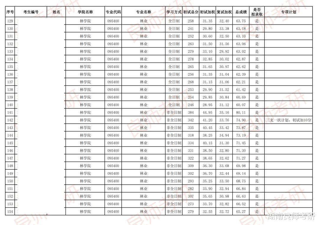 以下为中南林业科技大学26考研一志愿复试拟录取名单(部分)