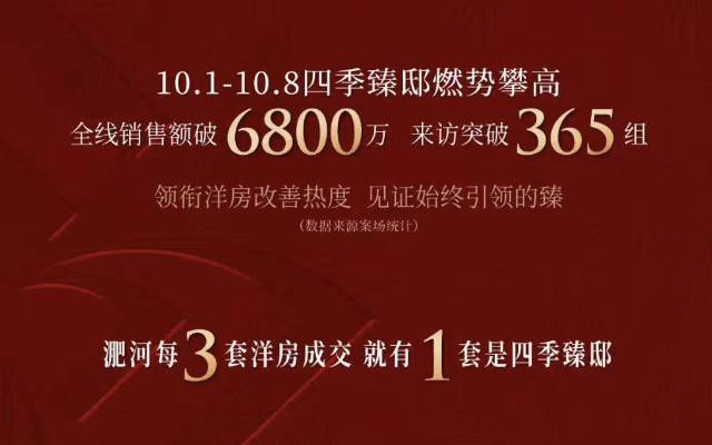 10月1日-8日期间,四季臻邸全线销售额破6800万,来访突破З65组。