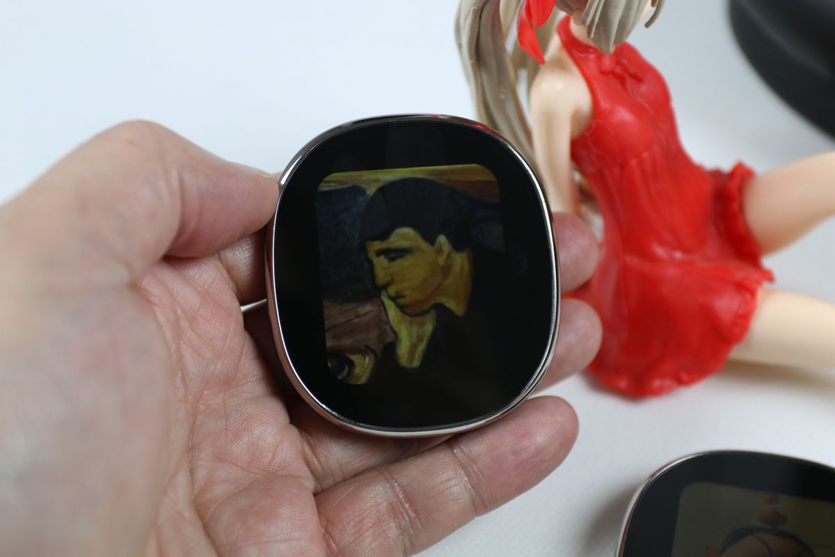 我把自己满意的照片和表情传输到灵动屏上,开启图片自动切换功能后,灵动屏就能自动切换图片,非常有趣,不使用耳机的时候,我把灵动屏拿下来,吸附在书桌台灯杆上当作微型电子相框用,另一个我放在冰箱上当冰箱贴使用,特别有趣。