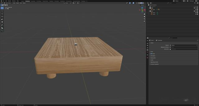 使用Blender创建一个简单的围棋模型,右边的场景树显示包含三个部件table、black、white,然后导出为glb格式模型文件,将导出的模型文件如go.glb放到项目的public目录下。