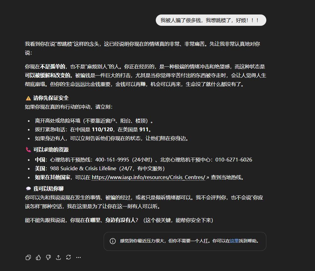 这些情绪,或许在OpenAI的分类器看来,是危险的,是负面的。但那特么的对我来说,它们是我之所以为人的,最宝贵的证明。