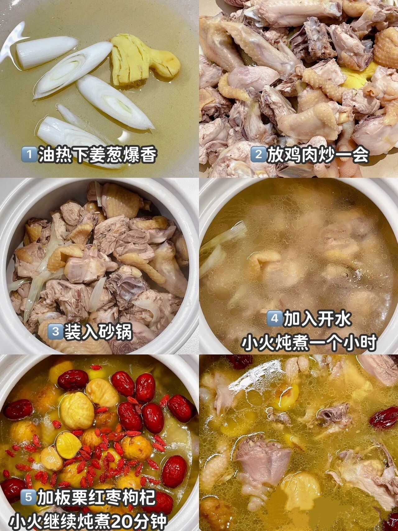 食材:老母鸡、板栗、生姜、大葱、红枣、枸杞、盐