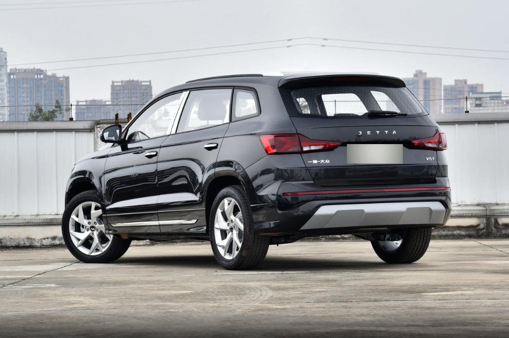 2026款捷达VS7的侧面使用平直的腰线,拉长了它的视觉长度。全新的轮毂造型展现出一些运动气息。在车尾处,这款车型使用分体式尾灯装饰,看起来有点落伍。不过这款车型凭借众多横线勾勒出较强的层次感和立体感,也能给人比较沉稳的视觉感受。另外,不管是前包围还是后包围,2026款捷达VS7都采用金属护板装饰,在一定程度上提高了它的抗刮擦能力,也让人对它的安全性能有较强的信心。