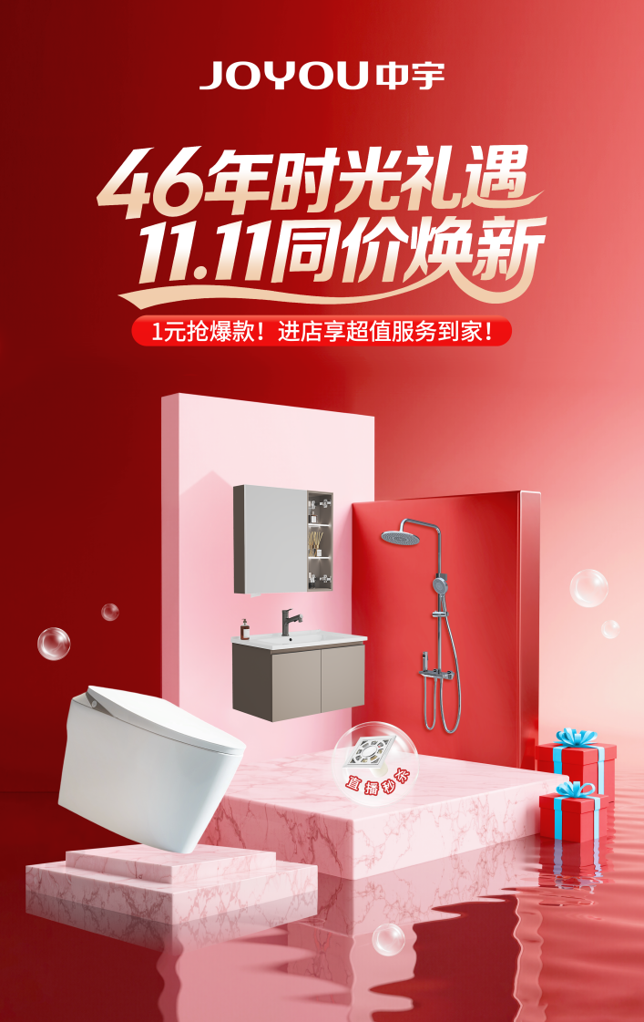 2025年11月1日-11月30日,值此创立46周年之际,中宇厨卫以“时光礼遇”为主题,致敬品牌历程,推出多款产品焕新升级。本活动通过“线上线下同价焕新”核心策略,整合全渠道资源,为消费者打造一场品质服务双升级的家居焕新盛宴,助力用户以更高性价比升级智能卫浴生活。