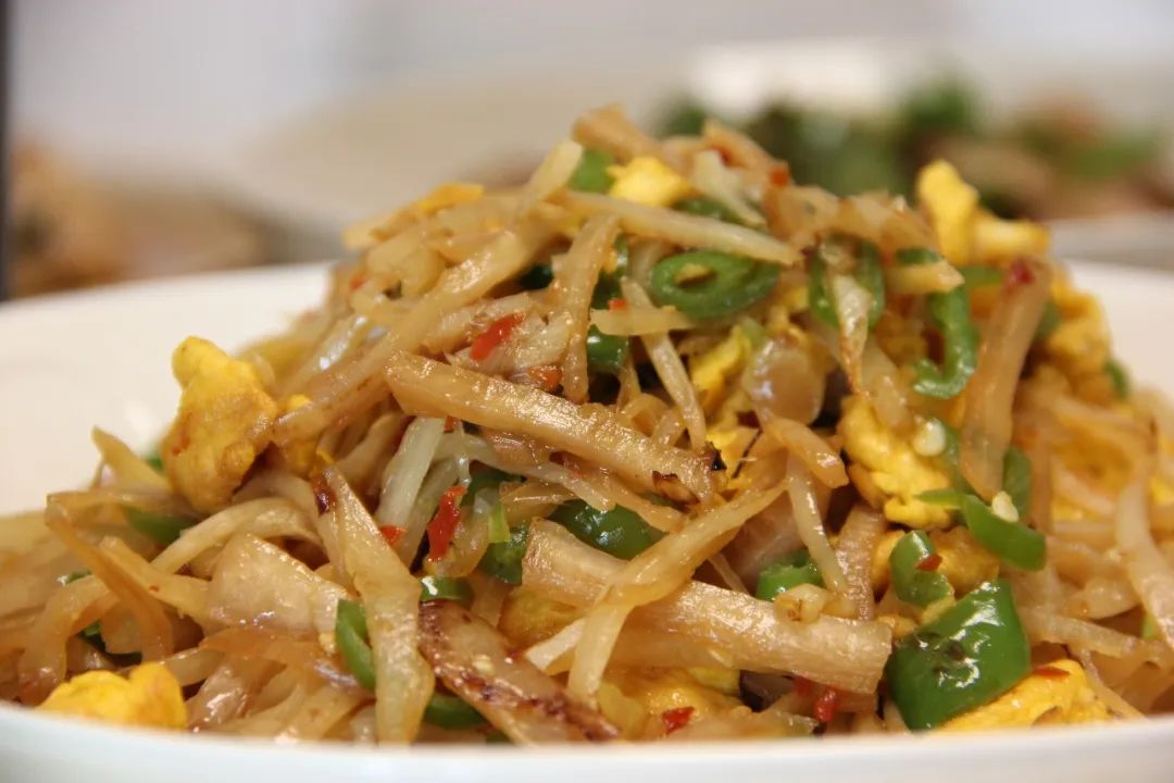 另外,还用之前腌的萝卜皮,做了一道湖南下饭菜,酸萝卜炒鸡蛋。