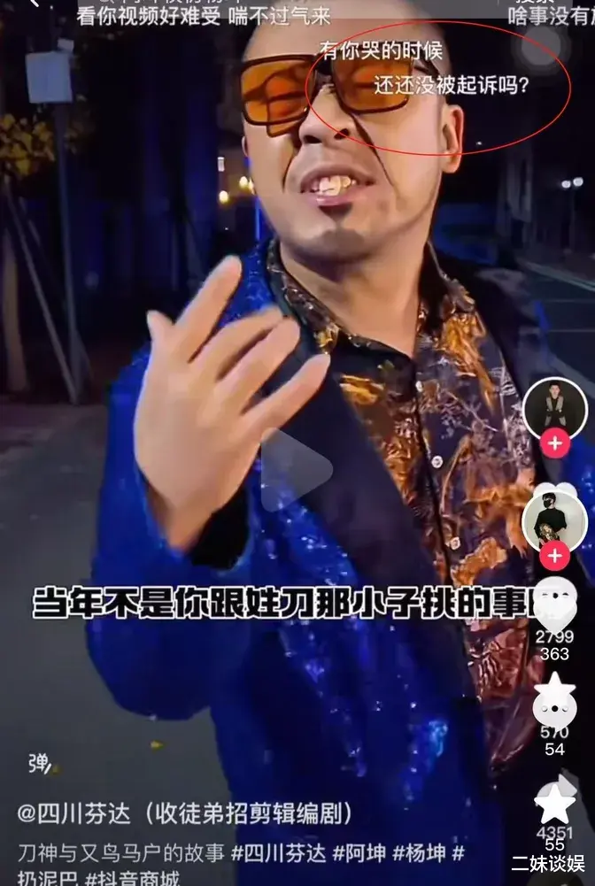 这并非这对网红首次“玩火”。在另一直播中,阿坤叼着烟冷笑:“阿坤早死了,还不是姓刀那小子害的?”暗指杨坤与刀郎的宿怨。更露骨的是,他们曾公然嘲讽刀郎复出演唱会“让华语乐坛倒退15年”——这恰恰是杨坤二十年前批评刀郎的原话。
