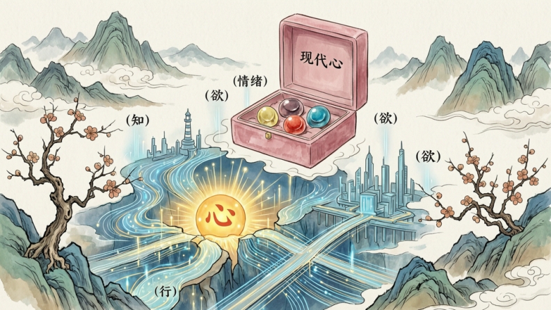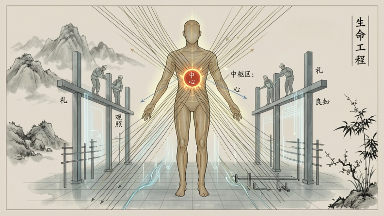 阳明为什么讲良知与知行合一?因为心不能只是知道,还要真能做主。也就是说,后面的所有方案,其实都在处理同一个核心问题:如何让这个生命中枢,不再被撕裂,不再被挟持,而逐步成为真正的中枢。