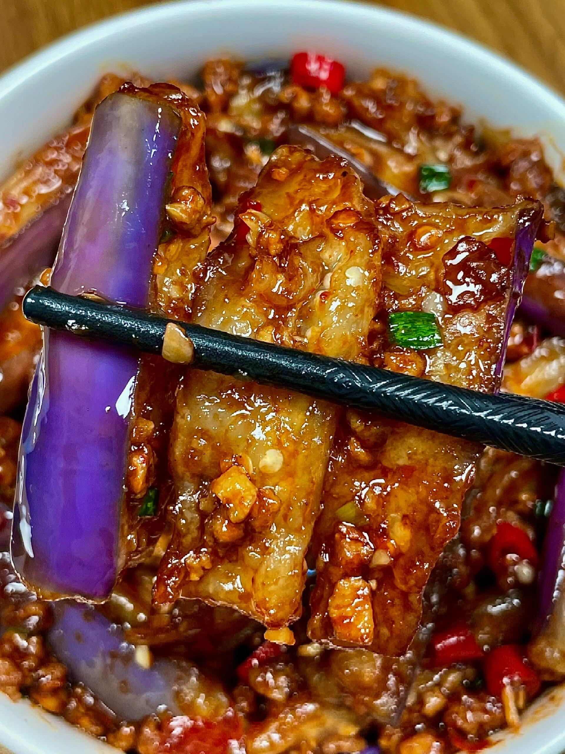 茄子从初夏的青涩长成盛夏的紫亮,经历了腌制时的阵痛,煎制时的锤炼,炖煮时的浸润,最终成就了这一碗软烂入味。肉末从案板上的零散,到锅中的蜕变,再到与茄子的完美结合,完成了它的使命。而我们在品尝这道菜的时候,何尝不是在品味着生活的滋味——需要时间的腌制去除青涩,需要高温的煎制定型自我,需要与他人的融合丰富内涵,最后在生活的酱汁里,炖煮出属于自己的味道。