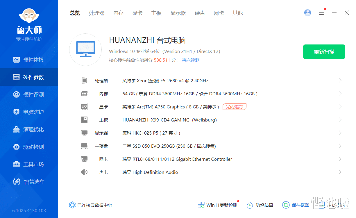 PO主的配置如下:CPU:至强E5-2680V4主板:华南金牌X99-CD4 GAMING显卡:英特尔A750 8G显卡内存:玖合星舞16Gx2+宏碁掠夺者Pallas凌霜16Gx2硬盘:三星850 EVO 250GB SSD+光威PCIE4.0 4TB缓存版电源:鑫谷750W散热:爱国者SX360冰魄水冷